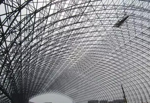 大煤廠結構全跨164m,長280m,小煤廠結構全長115m,跨度76m,結構凈高10m,主結構形式為拱形管桁架結構,傳力途徑簡捷,結構總高56.9m,圍護結構采用進口優質膜材。重量輕、抗震性能好,設計結構新穎,技術先進。